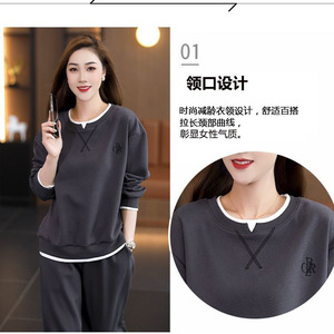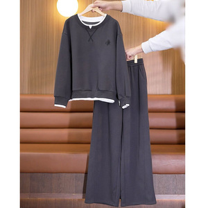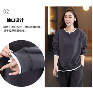 2025新款大码春秋时尚套装洋气休闲两件运动拼接卫衣假两件两件套