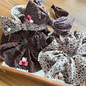 新款时尚复古花纹猫咪大肠发圈甜美少女心蝴蝶结发箍发卡发饰批发