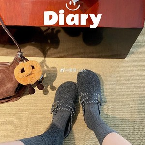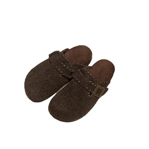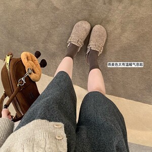 2025秋冬新款包头厚底勃肯半拖鞋女外穿保暖扣带毛呢懒人毛毛拖鞋
