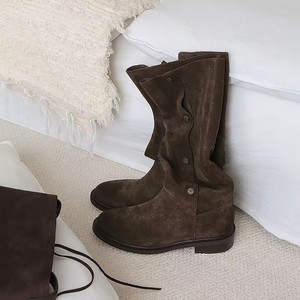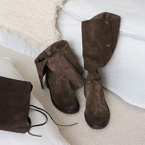 韩系两穿不过膝长靴西部牛仔靴女款复古擦色堆堆靴百搭马丁骑士靴