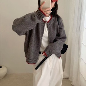 韩版撞色圆领双拉链针织开衫秋冬新款软糯时尚休闲百搭宽松毛衣女