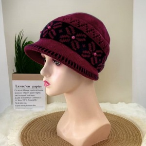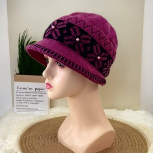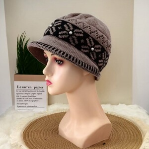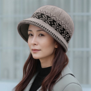 中老年帽子女秋冬时尚保暖妈妈护耳盆帽加绒渔夫帽防寒针织毛线帽