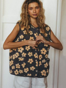 欧美跨境女装2025秋冬新款时尚颗粒仿羊羔毛印花无袖马甲外套上衣