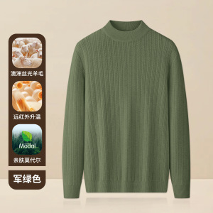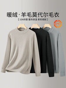 绵羊毛莫代尔半高领毛衣男2025秋冬保暖坑条针织衫长袖中领打底衫