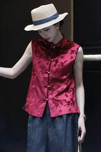 国潮时尚套装2025秋款人丝章绒提花双面穿马甲+高腰显瘦九分裤女