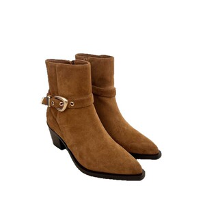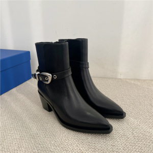 2025新款sw秋冬侧拉链粗跟尖头短靴舒适真皮皮带扣马丁靴瘦瘦靴女