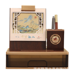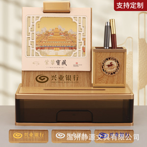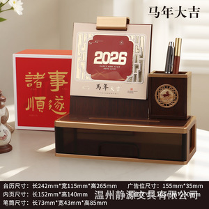 2026年木质台历复古创意多功能笔筒商务台历摆件厂家批发定制LOGO