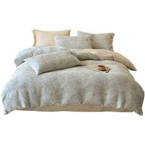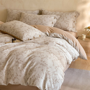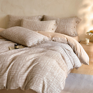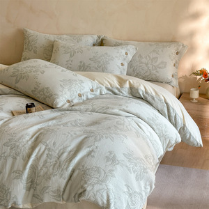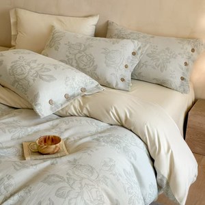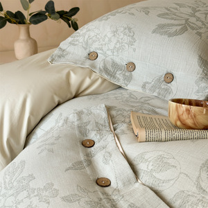 纽扣款纯棉三层纱提花床上四件套100全棉轻奢中式风床笠床单被罩