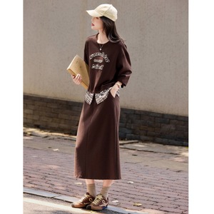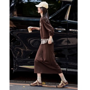 宽松休闲减龄套装25年秋新字母印花假两件卫衣+纯色半裙