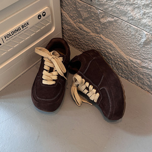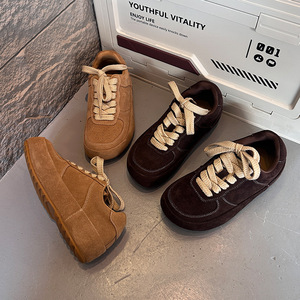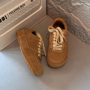 真皮小白鞋女2025秋季新款单鞋绒皮休闲百搭软底不累脚复古板鞋子