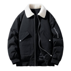NASA品牌冬季加厚羊羔绒翻领棉衣男士大码潮牌保暖夹克棉服外套