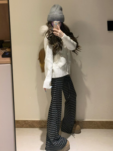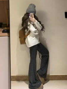 韩系条纹微喇裤女早秋2025新款慵懒风遛弯裤修身阔腿垂感休闲裤子