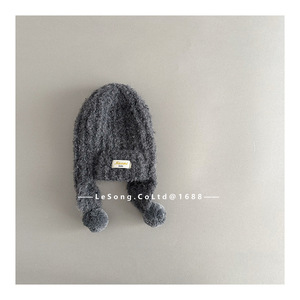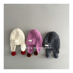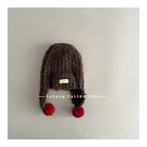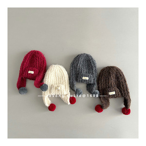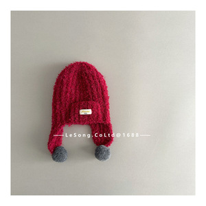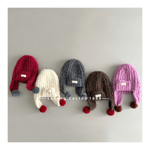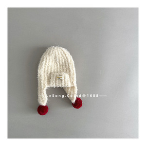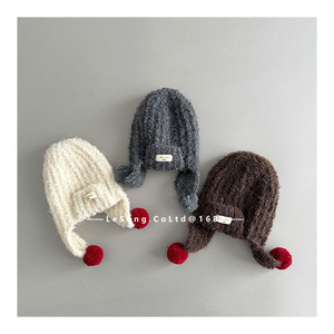 ins风韩范冬季儿童帽子宝宝毛球护耳帽男女童系带保暖针织雷锋帽