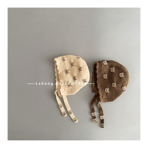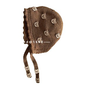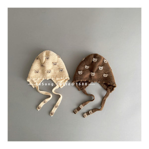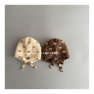 很多小熊~婴儿针织帽秋冬加厚保暖可爱系带护耳帽婴幼儿宝宝帽子
