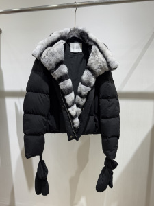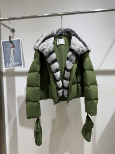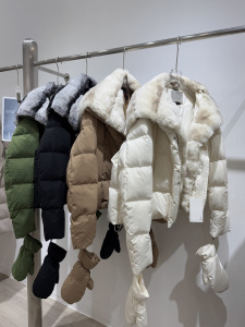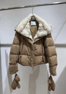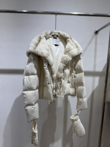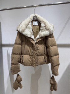 MAX 2025新款獭兔毛领白鹅绒连帽羽绒服女短款袖子可脱卸两穿外套