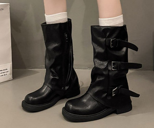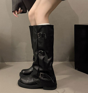 网红复古粗跟中筒靴女2025新款小众时尚西部牛仔靴褶皱堆堆靴
