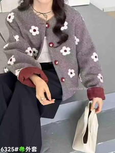 厂家直销欧洲站设计感立体花朵圆领小香风呢子外套女25秋冬上衣潮