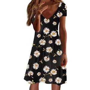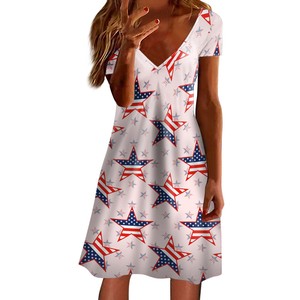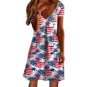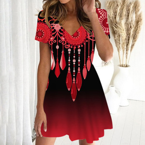 新款女士V领短袖连衣裙复古民族风个性渐变印花裙厂家批发WQ20