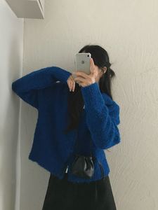 圈圈纱甜美翻领韩系针织开衫女秋冬新款宽松显瘦减龄软糯毛衣外套