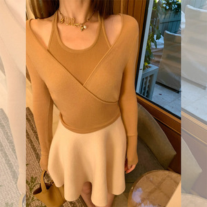 暖栗驼开衫+方领吊带