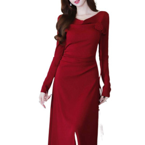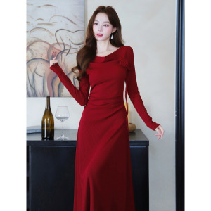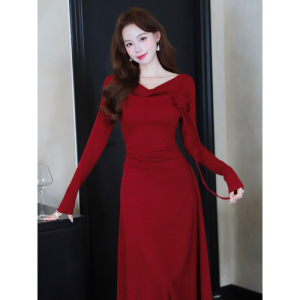 超好看的法式红色针织连衣裙气质绝美平时可穿小礼服红色生日裙子