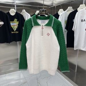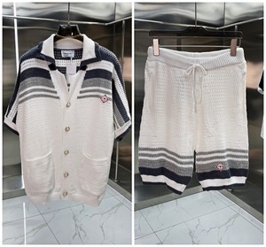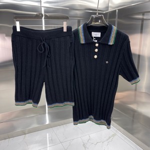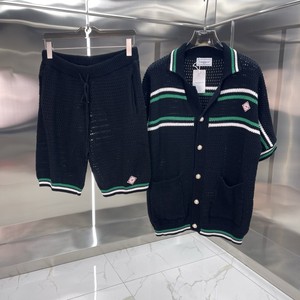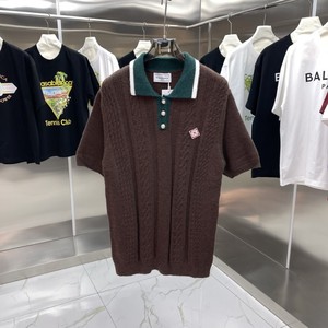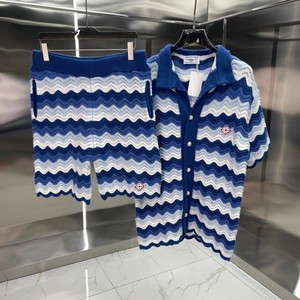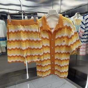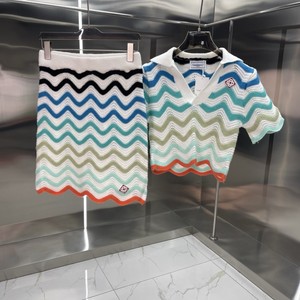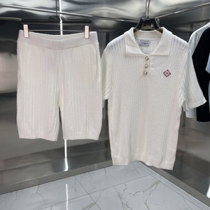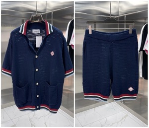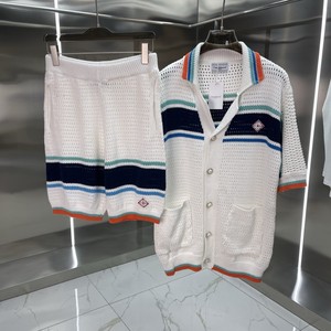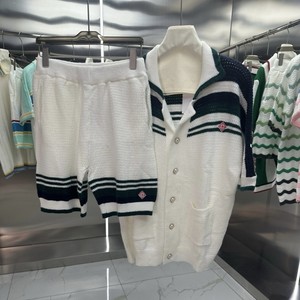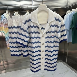欧美外贸casa卡萨布兰卡针织衫毛衣短袖提花开衫polo衫情侣短裤套