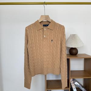 高版本/RL25秋冬款翻领带标小马刺绣羊毛羊绒麻花长袖上衣女款