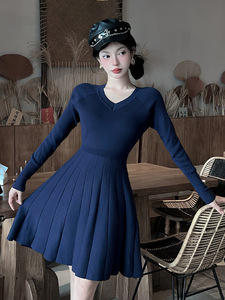 法式小香风针织连衣裙女2025秋冬新款小个子高级感打底A字毛衣裙