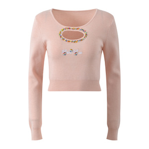 2025秋季新款时尚气质镂空钉珠温柔减龄圆领短款针织套头上衣