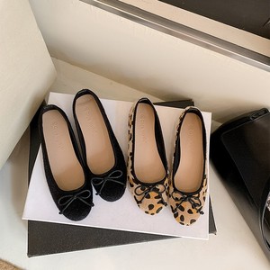 网红同款真皮马毛经典圆头浅口百搭蝴蝶结豹纹平底单鞋女春秋上新