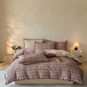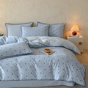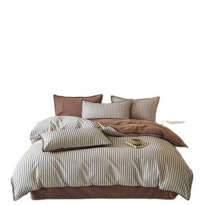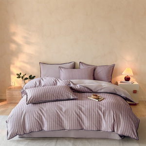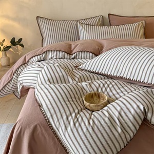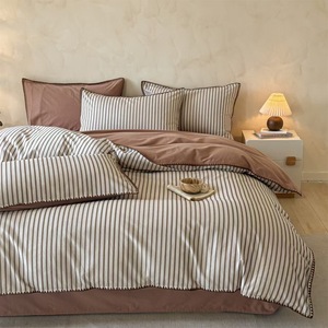 全棉磨毛四件套秋冬加厚贝壳边纯棉被套小清新条纹床上用品三件套