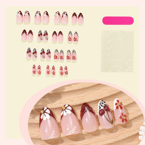 ins风穿戴甲秋冬豹纹3D立体滴胶法式边穿戴甲纯手作30片甲片批发