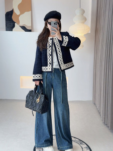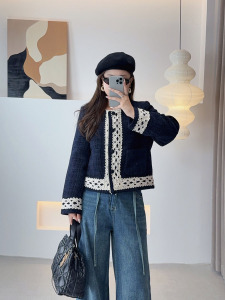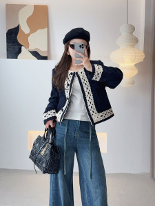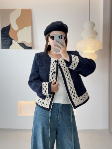 子元2025新款秋季外套女大码女装胖妹妹拼接花边小香风上衣9093