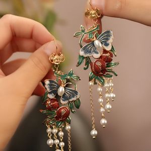 中古滴油蝴蝶树叶花朵流苏耳钩宫廷风重工气质耳环轻奢高级感耳饰