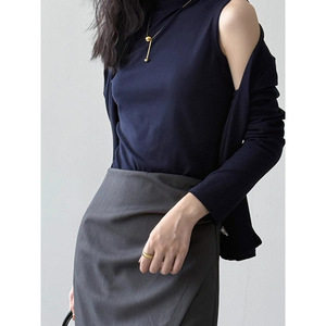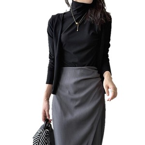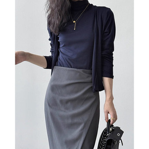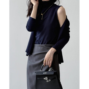 现货厂家批发 气质通勤上衣套装女半高领背心+长袖开衫罩衫两件套