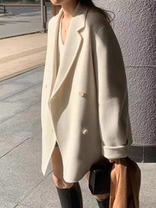 6t 韩国东大门OUNCE同款2025秋冬简约百搭双排扣短款毛呢外套女