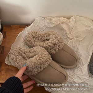 河南桑坡羊皮毛一体卷毛星拖一脚蹬翻毛皮保暖防滑韩系拖鞋家居鞋