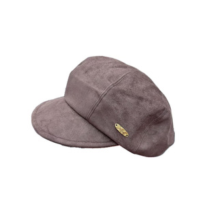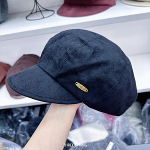 批发韩国2025年秋冬新款英伦复古纯色金属标八角帽女显脸小报童帽