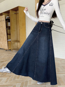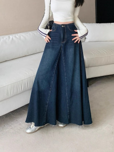 2025秋装新款胖mm大码女韩系设计感牛仔群显瘦长款半身裙