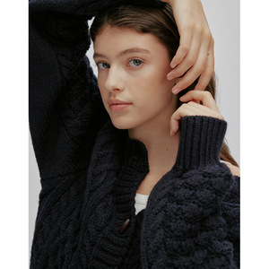 韩国订单韩国设计师25秋冬新款日系复古风毛衣外套针织开衫女厚款