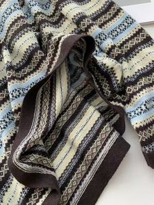 复古撞色民族风提花针织衫上衣2025秋新款韩版宽松显瘦羊毛打底衫