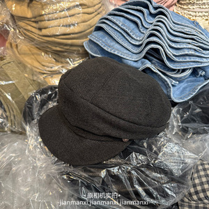 韩系ins新款文艺复古毛呢气质平顶军帽女秋季简约褶皱百搭画家帽