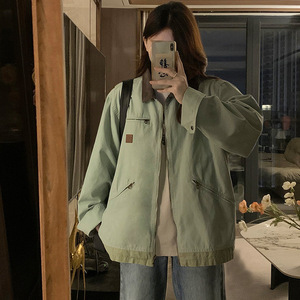 塞纳复古底特律夹克男女2025春秋工装外套巴恩风美式宽松拼色外套
