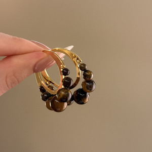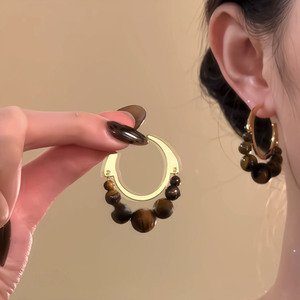 美拉德风虎眼石圆形耳环轻奢气质小众耳钉时尚高级感百搭耳饰批发