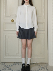 交叠领法式衬衫/天丝醋酸混纺内搭娃娃领衬衣上衣女