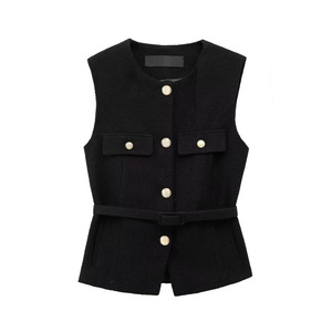 跨境外贸2025欧美风时尚气质金属扣饰配腰带朋克纹理圆领马甲背心