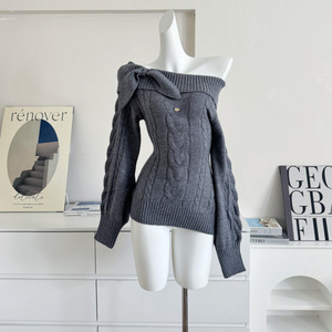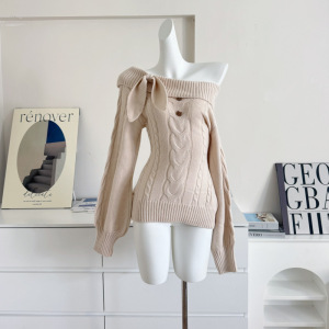 秋上新!古早感萌萌兔耳领收腰修身毛衣