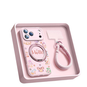 AU484线条动物聚会【粉白色】★带挂绳★真液态★内嵌磁吸支架