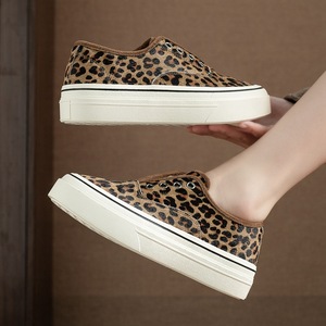 东莞外单女鞋品牌同款航海真皮厚底增高一脚蹬懒人鞋豹纹小白女鞋