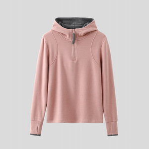 2025新款纯色半拉链德绒连帽卫衣女秋冬设计感小众打底衫上衣帽衫